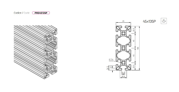 Profilo in Alluminio 45x135 C.10 Pesante PR045135P