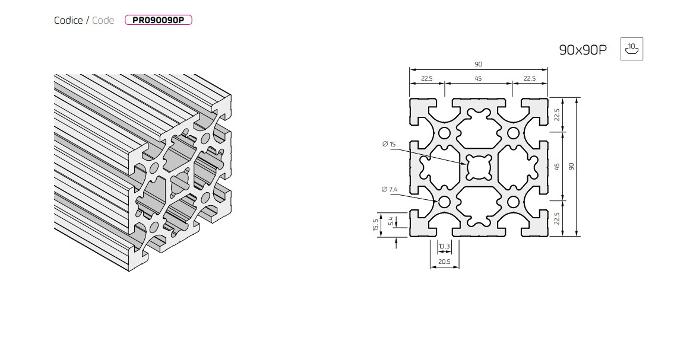Profilo in Alluminio 90x90 C.10 Pesante PR090090P