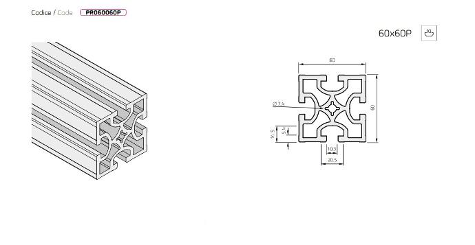 Profilo in Alluminio 60x60 C.10 Pesante PR060060P