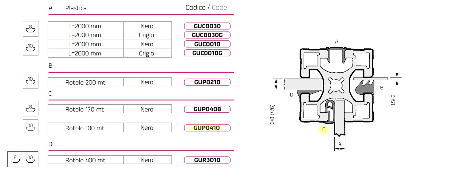 Guarnizione per pannelli sp.4 P 10 GUP0410