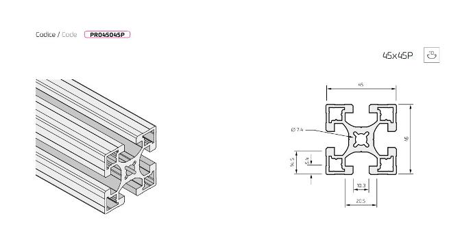 Profilo in Alluminio 45x45 C.10 Pesante PR045045P